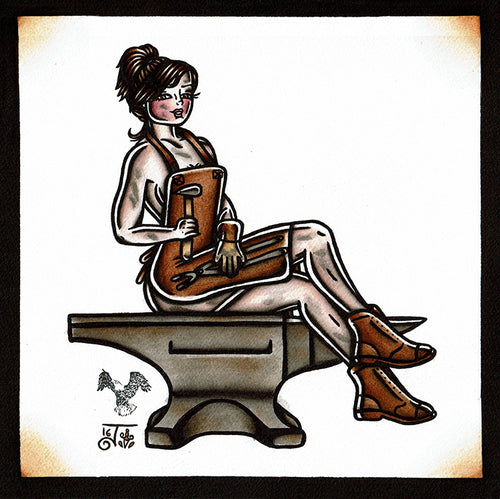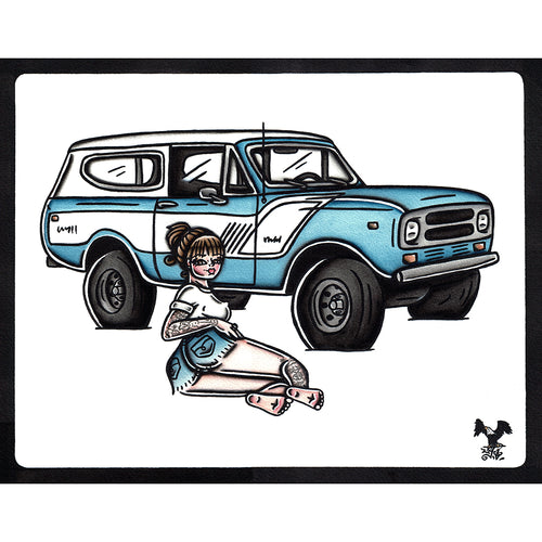 Cone Shovel Chopper Pinup (Green and Purple Flames) Original Painting