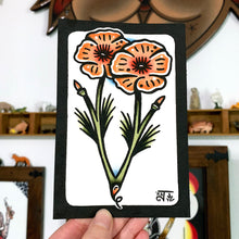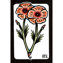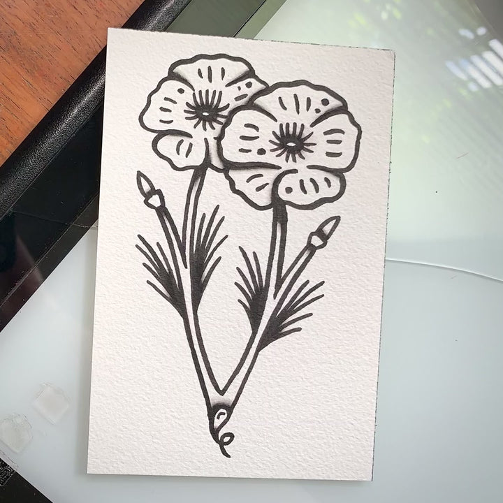 American traditional tattoo flash California Poppies ink and watercolor painting.