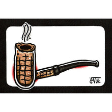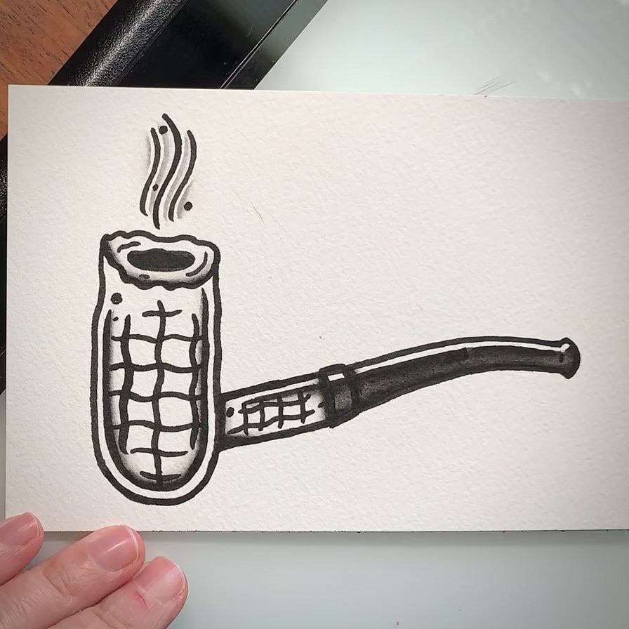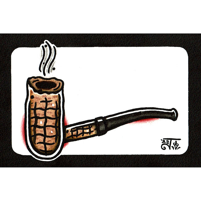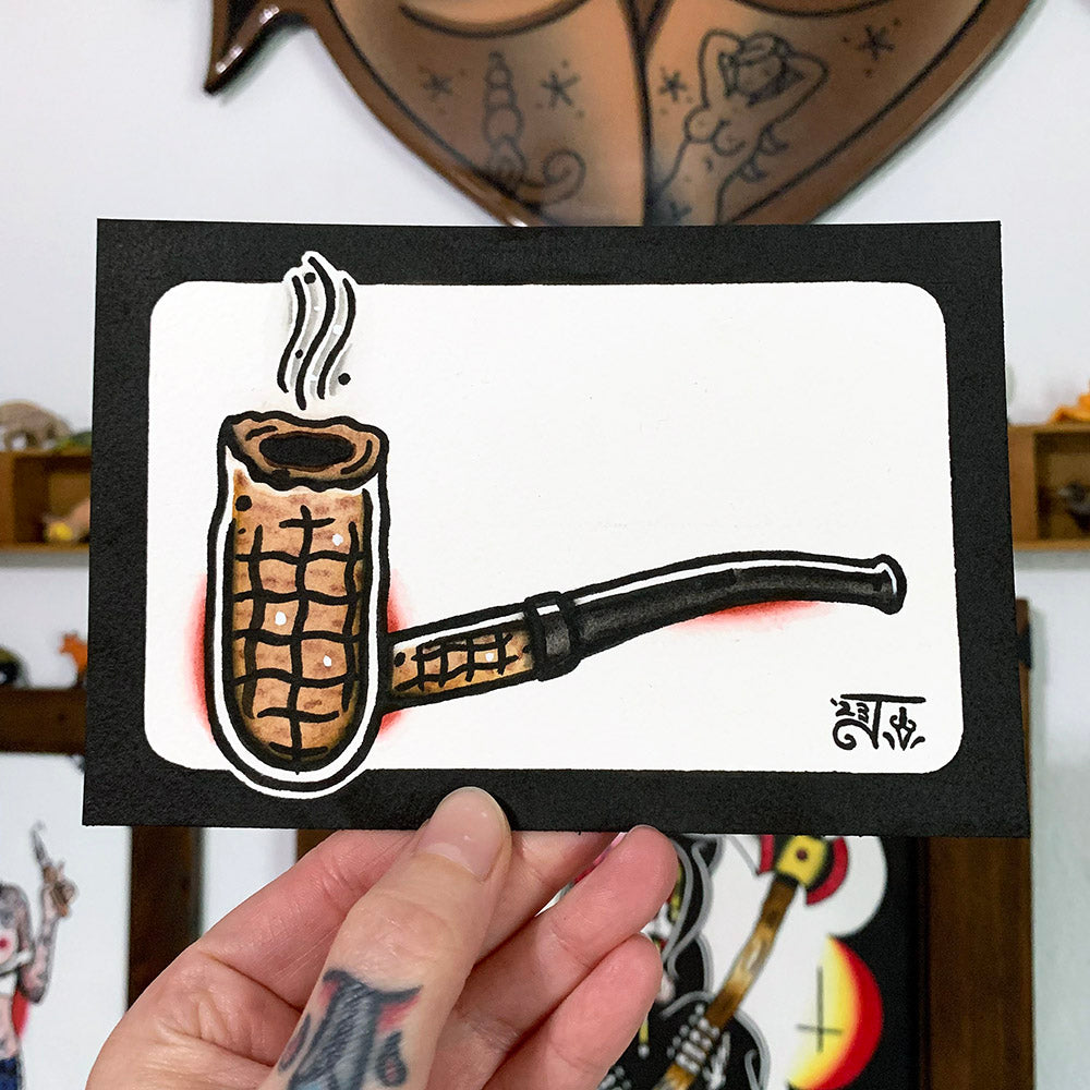 American traditional tattoo flash illustration Corn Cob Pipe ink and watercolor painting.
