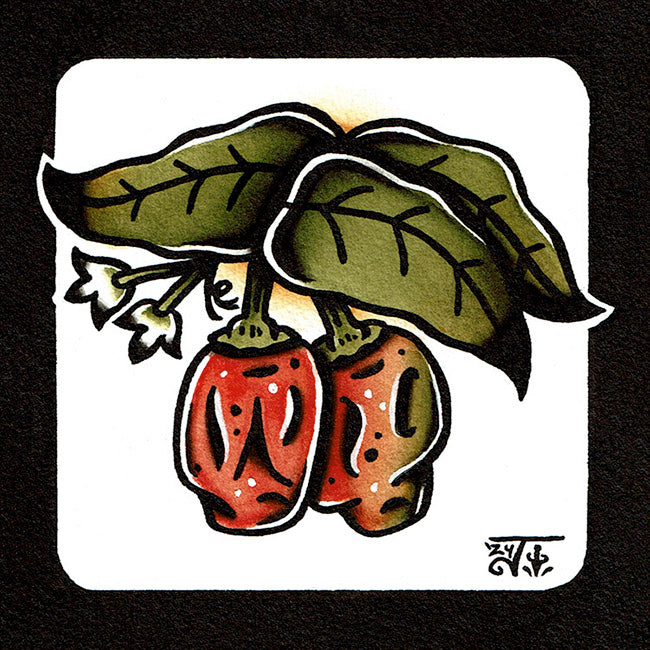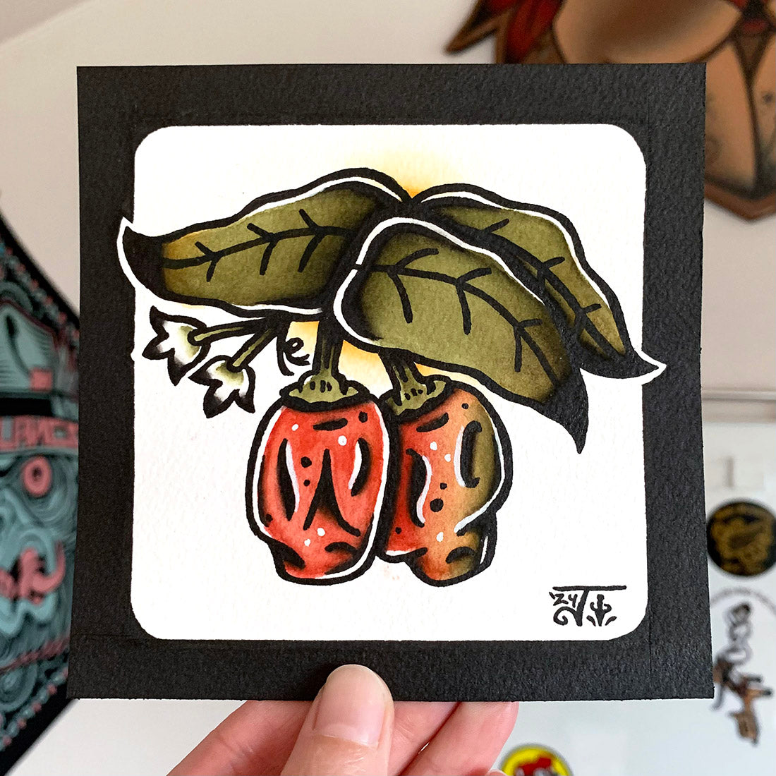 American traditional tattoo flash Habanero Peppers watercolor painting.