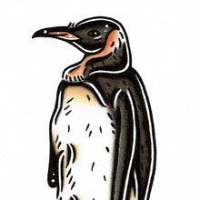 • Load image into Gallery viewer, American traditional tattoo flash wildlife illustration King Penguin painting.