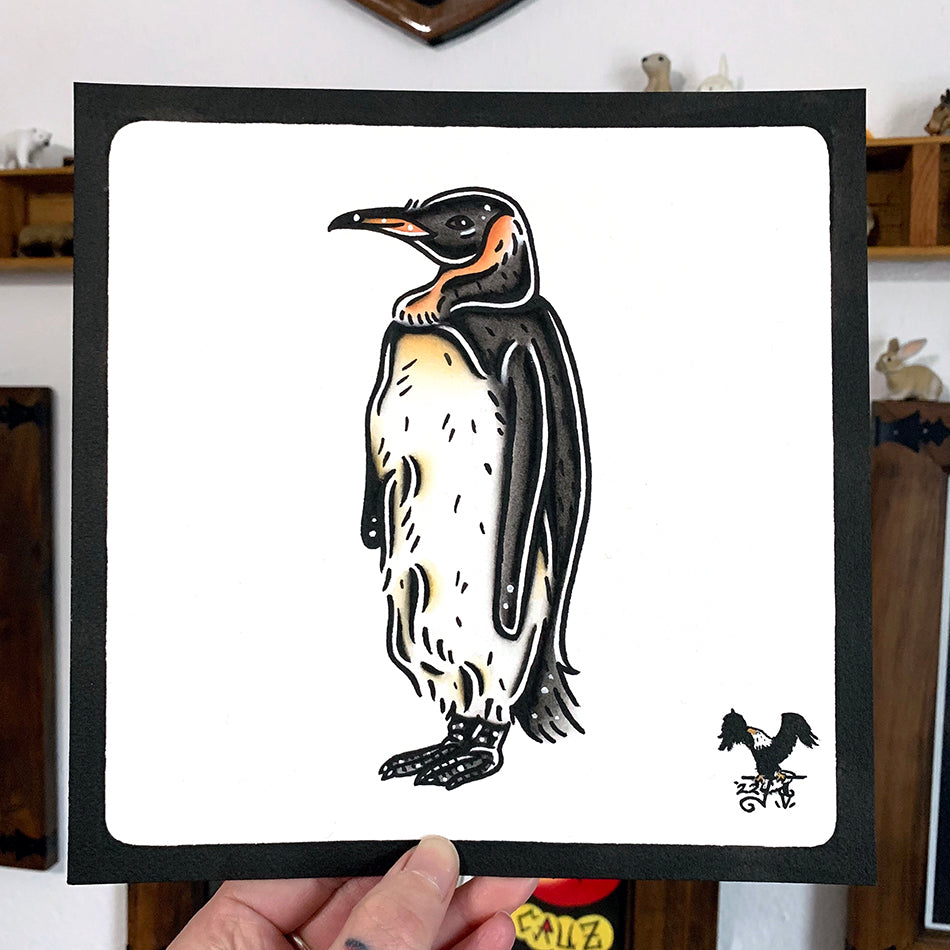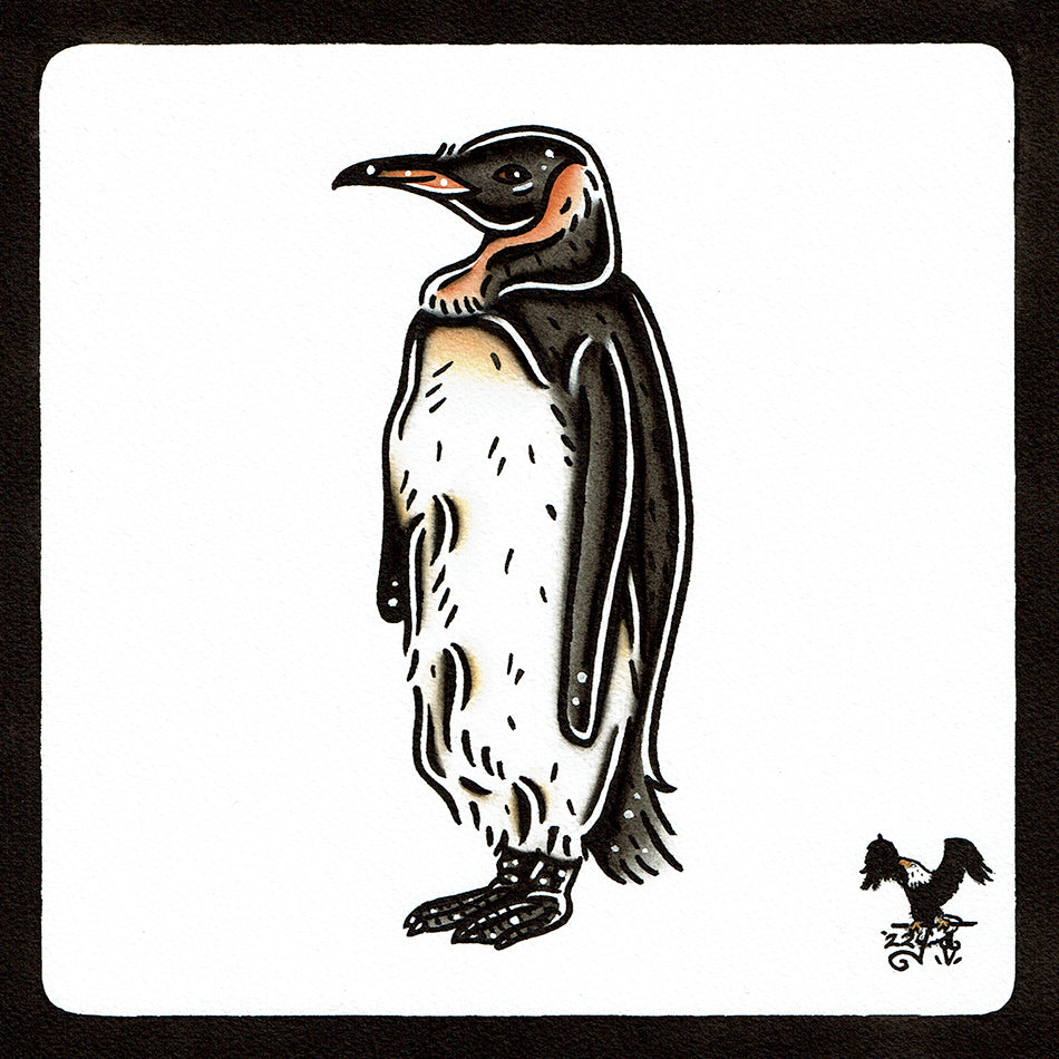 American traditional tattoo flash wildlife illustration King Penguin painting.