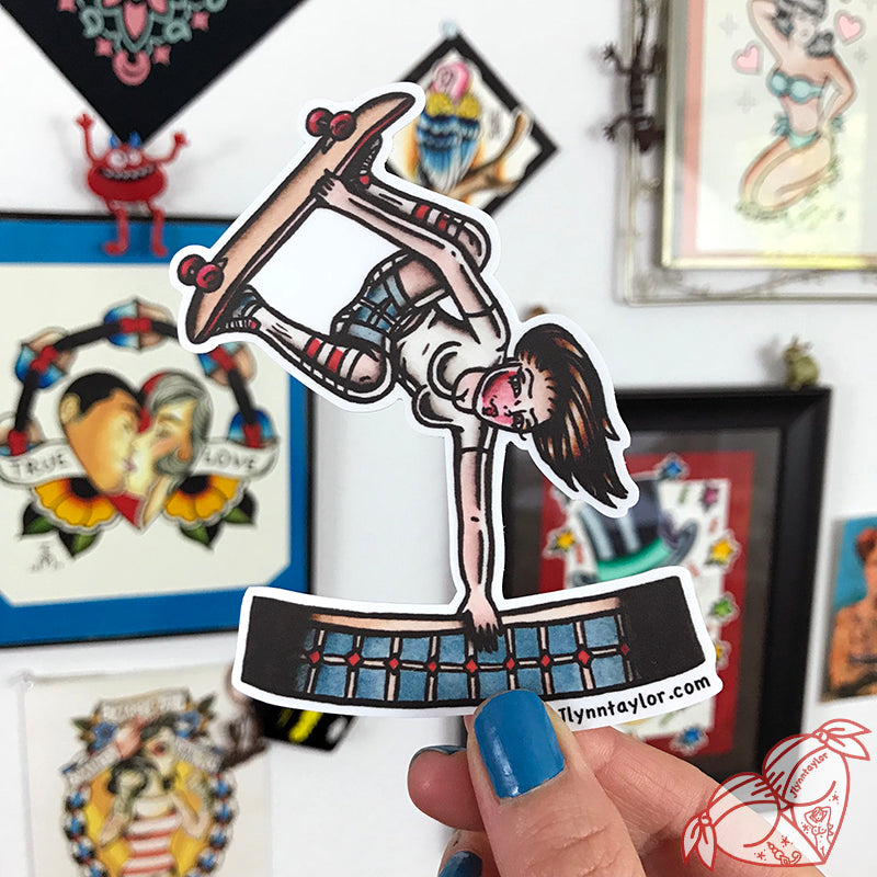 Skateboarder 3 die cut sticker on thick vinyl. Weather and scratch proof lasting up to 5 years outdoors. Beautiful quality stickers printed by Rebel Reprints.