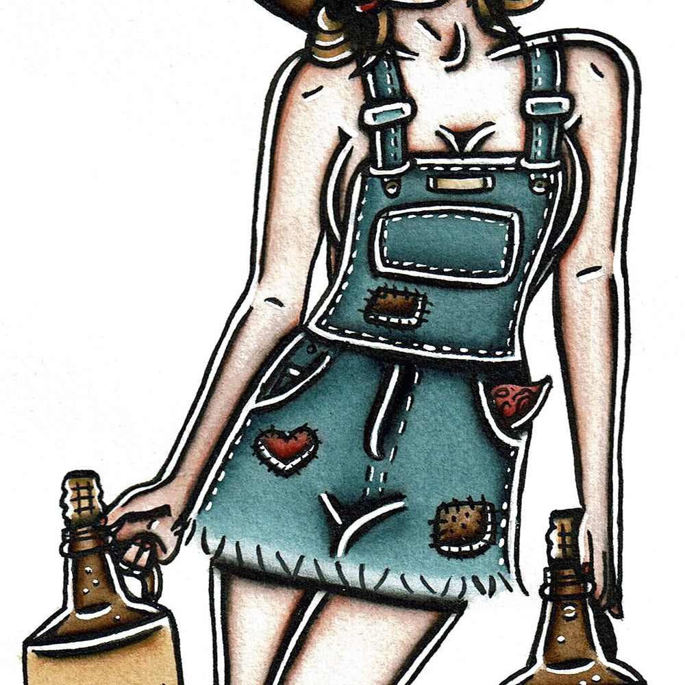 • Load image into Gallery viewer, American Traditional Moonshiner Pinup painting.