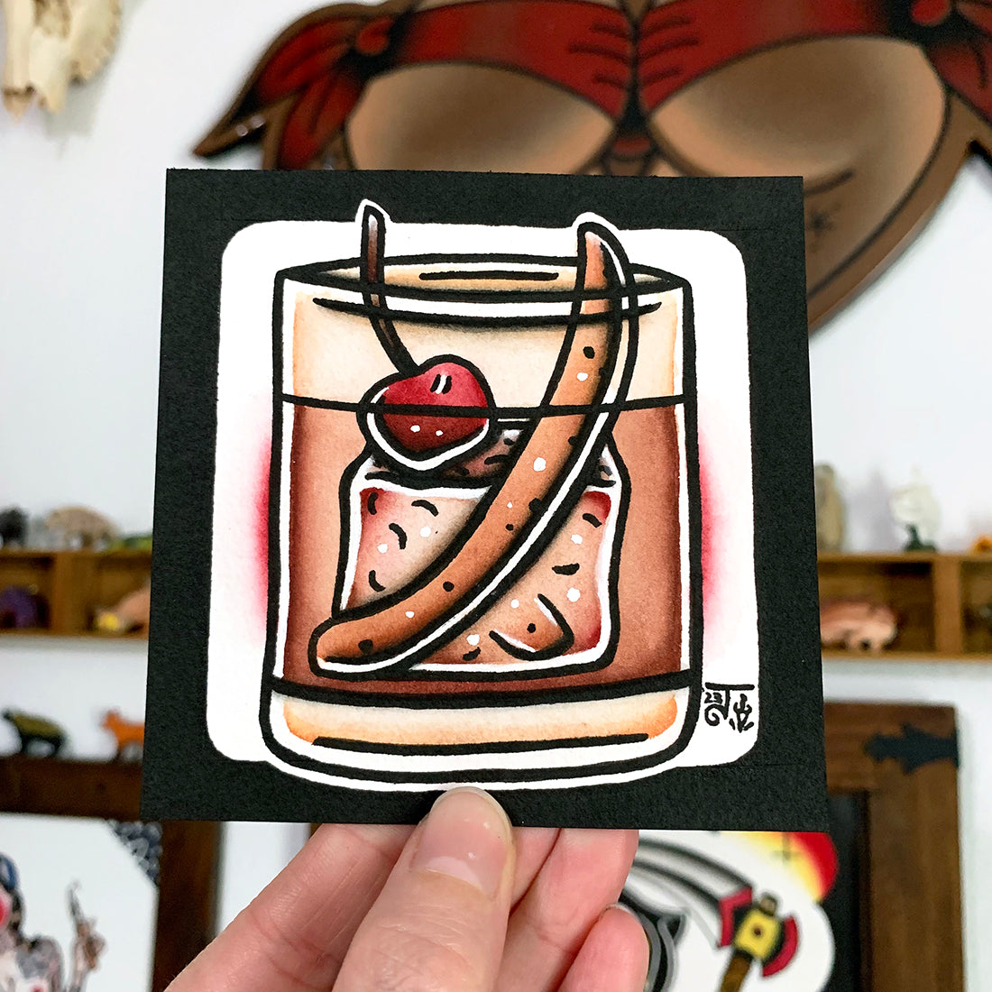 Original hand painted ink and watercolor painting on a 4x4 inch 100% cotton textured watercolor paper. Merchandise might be made from this design.