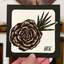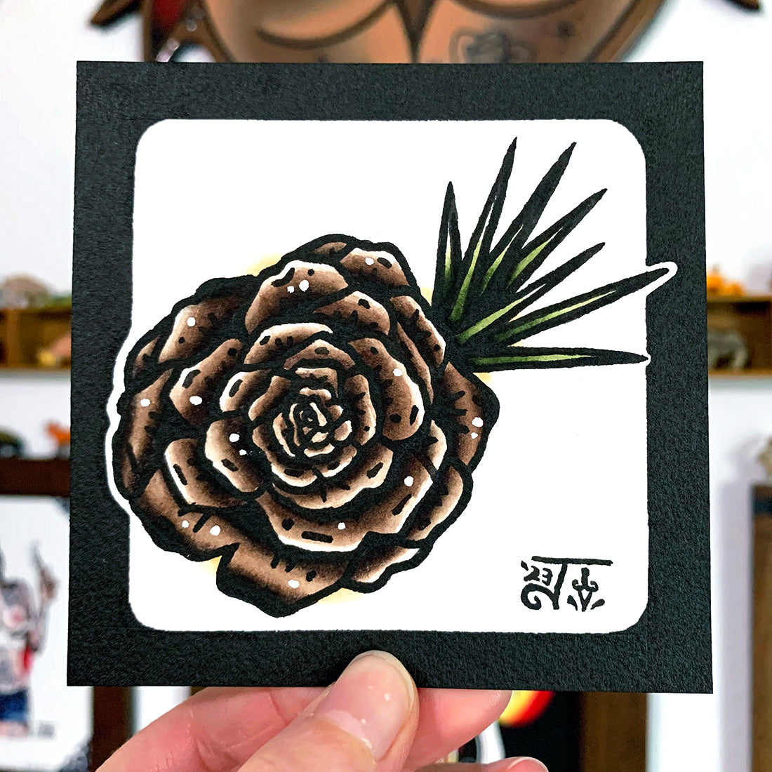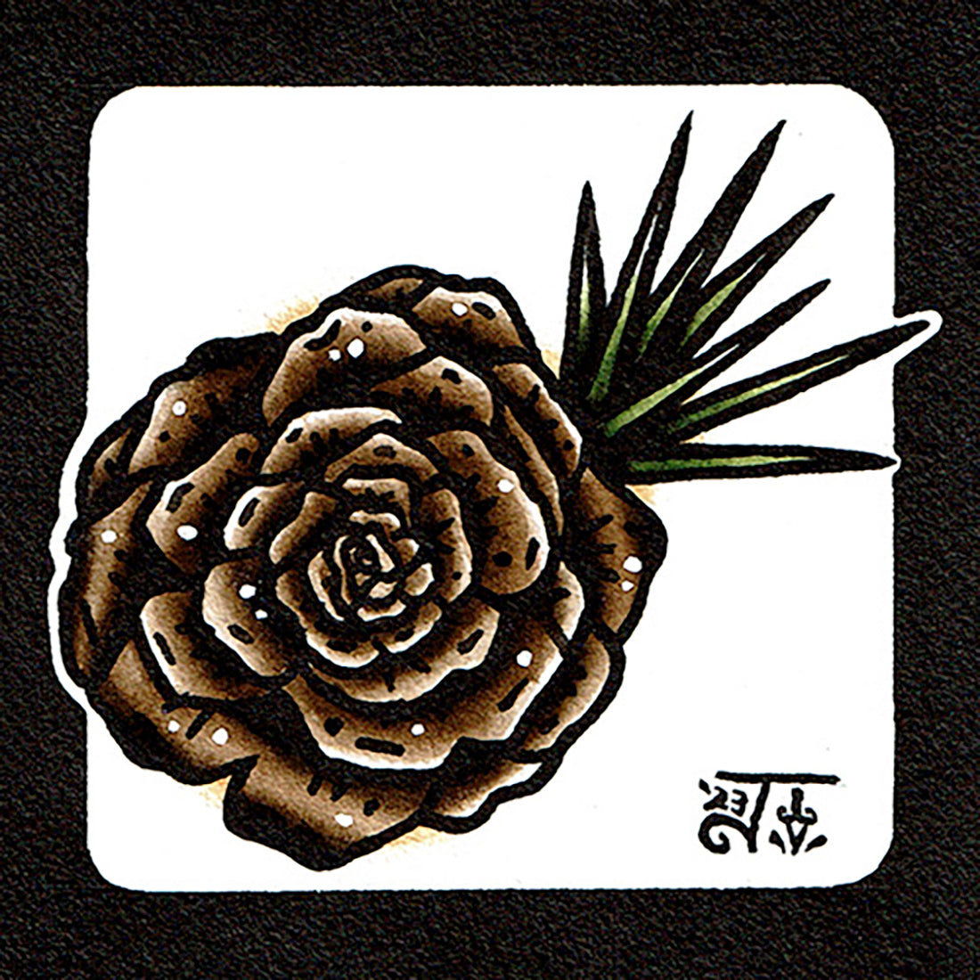American traditional tattoo flash Pinecone Rosette watercolor painting.