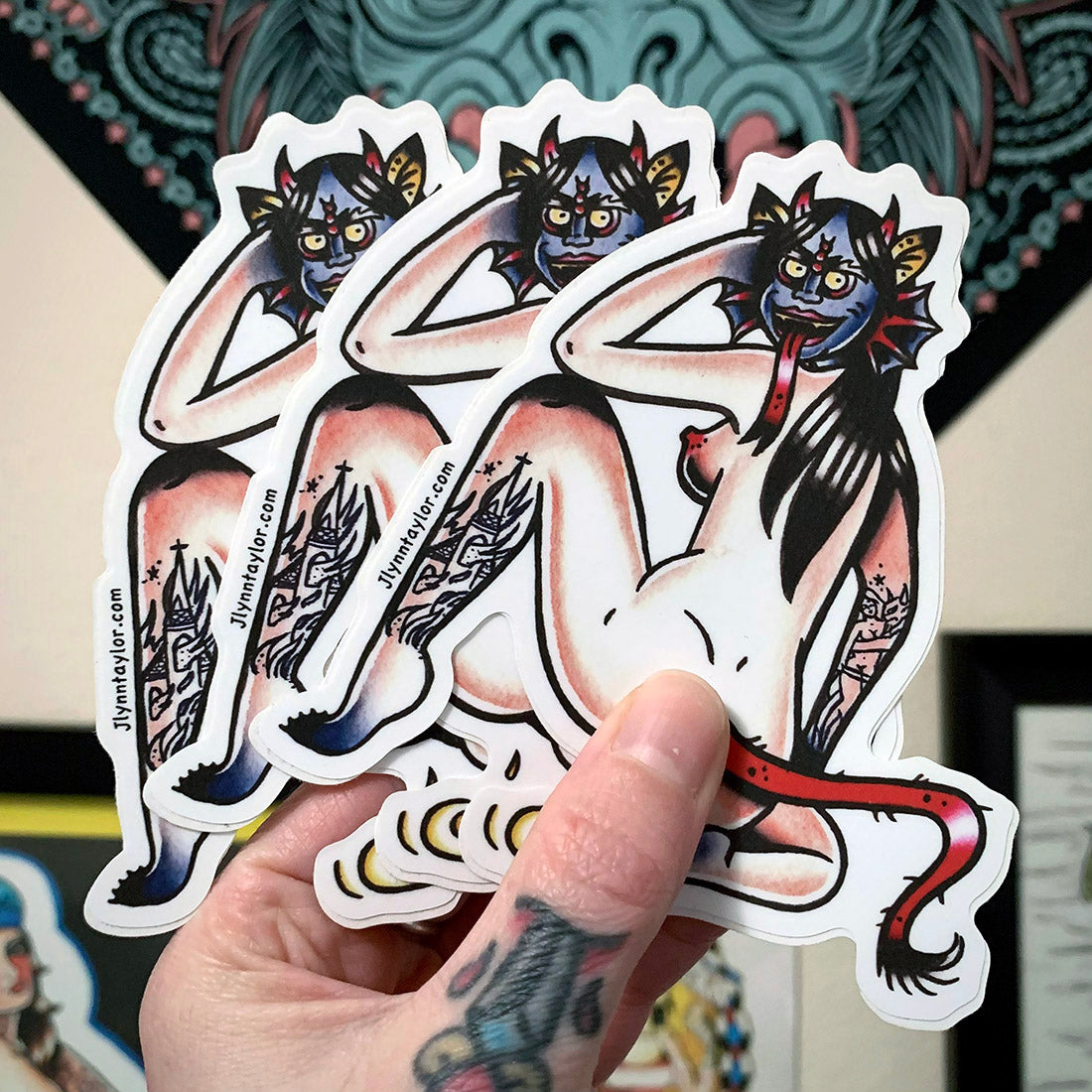 Professionally printed Piss Demon die cut sticker on thick matte vinyl. Weather and scratch proof lasting up to 5 years outdoors. Approximately 4x4 inches. Original ink and watercolor artwork by Jlynntaylor.