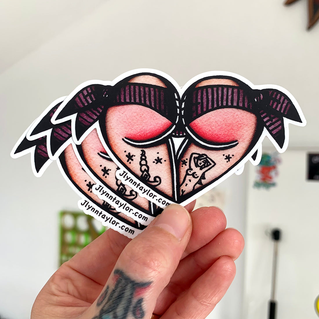 American traditional tattoo flash Purple Pinstripe Scrunch Butt Heart watercolor Sticker.
