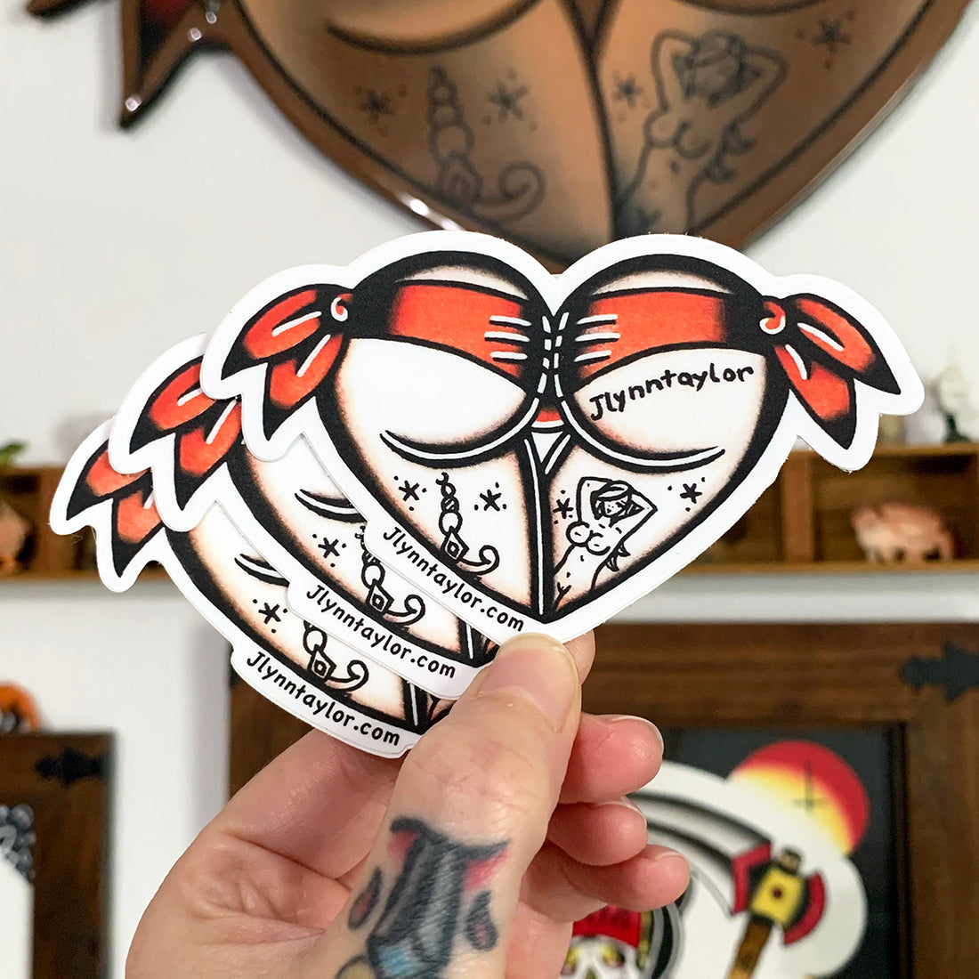 Orange Scrunch Butt Heart die cut sticker on thick matte vinyl. Weather and scratch proof lasting up to 5 years outdoors.