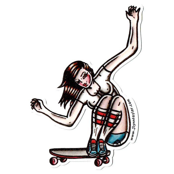 Skateboarder #4 die cut sticker on thick vinyl. Weather and scratch proof lasting up to 5 years outdoors. Beautiful quality stickers printed by Rebel Reprints.